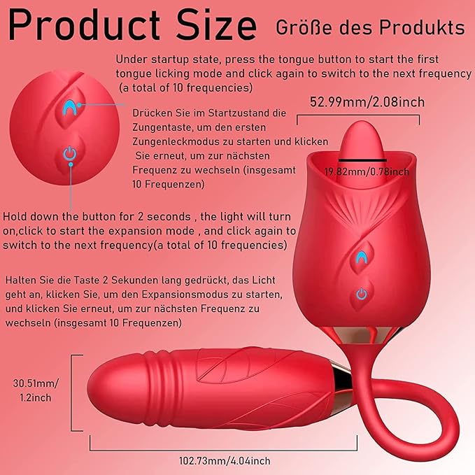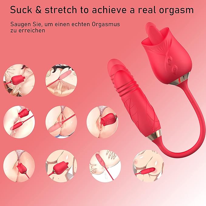 【Powerful Dual Motors】this rose vibrator has 10 tongue licking functions, 10 stretching vibration modes, different licking and vibration modes to meet your different needs. Breast massage, clitoral stroking, G-spot stimulation, anal massage, combination of functions to reach orgasm more easily.